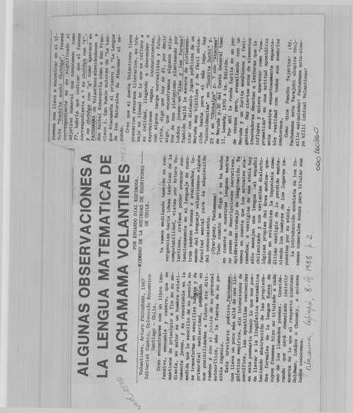 Algunas observaciones a la lengua matemática de pachamama Volantines [artículo] Eduardo Díaz Espinoza.