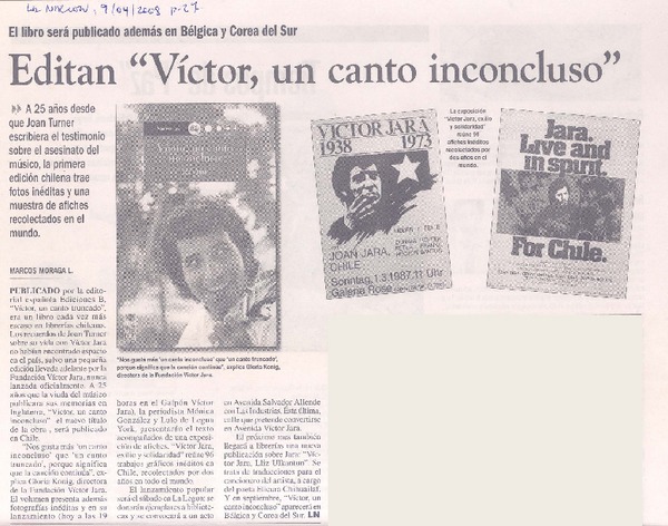 Editan "Víctor, un canto inconcluso" [artículo]Marcos Moraga L.