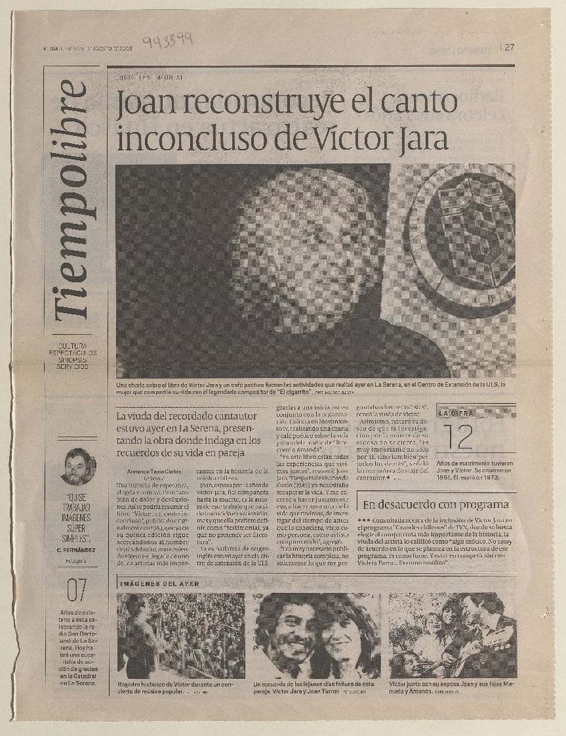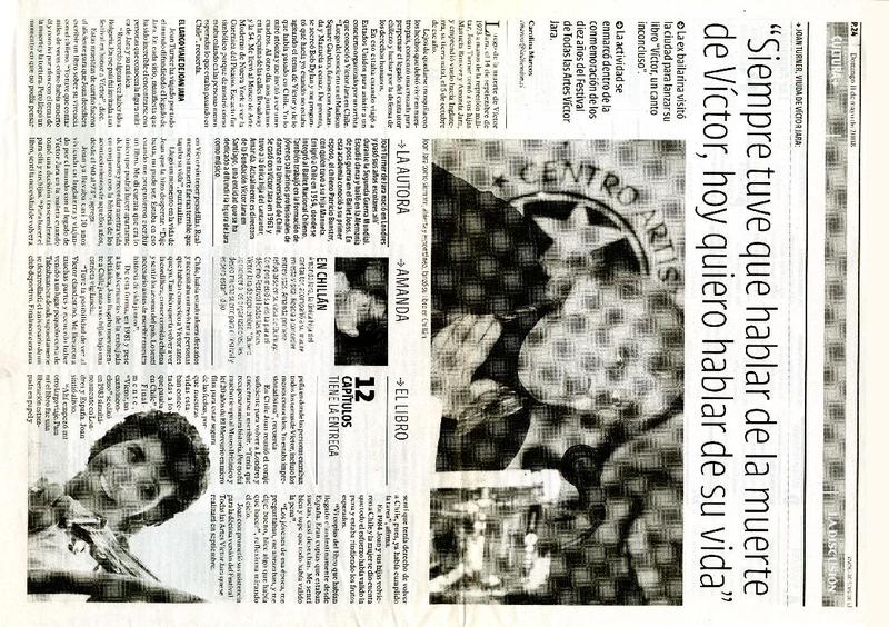 Joan reconstruye el canto inconcluso de Víctor Jara [artículo] Armando Tapia Cortés.