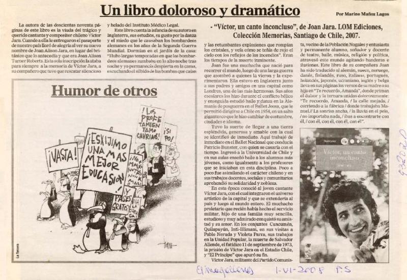 Un libro doloroso y dramático [artículo] Marino Muñoz Lagos.