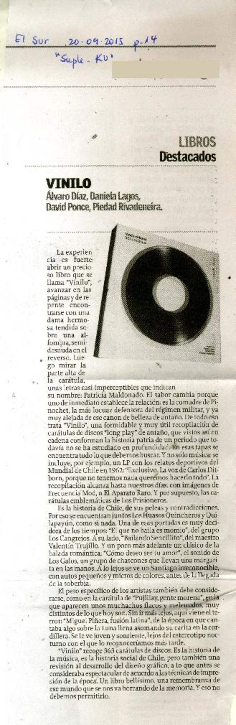 Autores chilenos - Ponce, David - Díaz, Álvaro - Lagos, Daniela - Rivadeneira, Piedad - Incluye ilustración de carátulas de vinilos y cds - Vinilo chileno: 363 carátulas