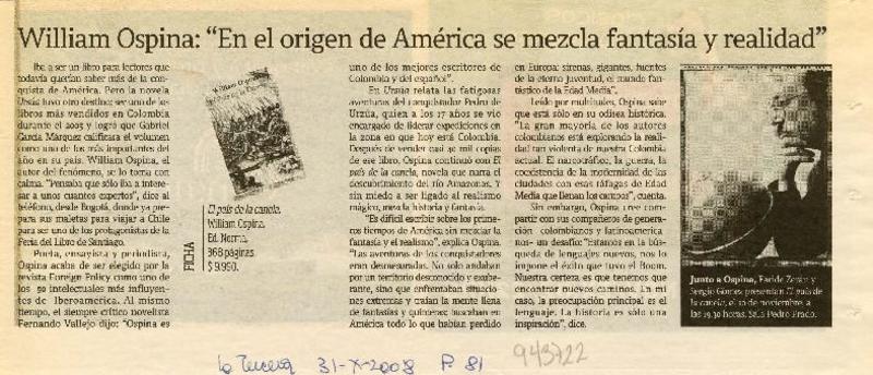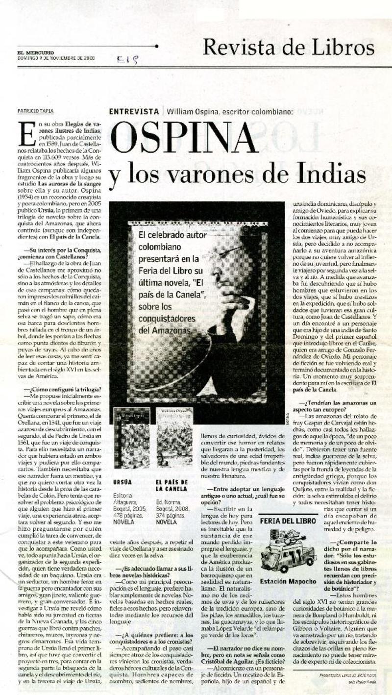 Ospina y los valores de Indias (entrevista) [artículo] Patricio Tapia.