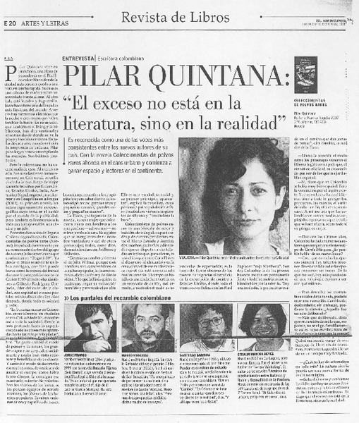 Pilar Quintana: "El exceso no está en la literatura, sino en la realidad" (entrevistas) [artículo]P.J.A