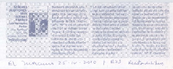 Autores chilenos - Señores auditores, muy buenas tardes - Hernández Parker, Luis