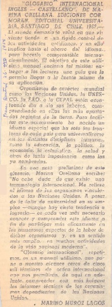 "Glosario internacional inglés-castellano" [artículo] Marino Muñoz Lagos.