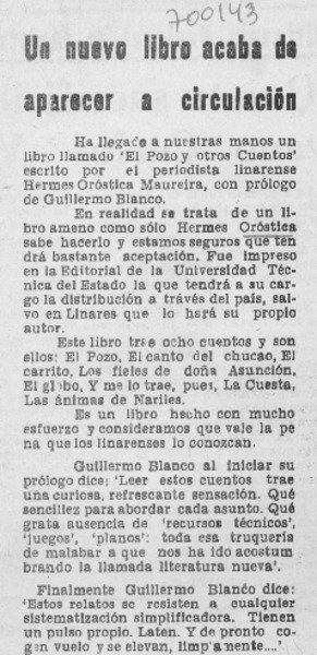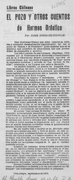 El pozo y otros cuentos de Hermes Oróstica [artículo] Jaime González Colville.