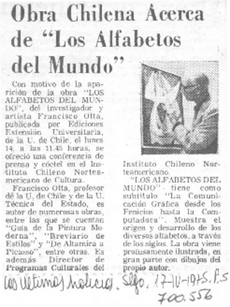 Obra chilena acerca de "Los alfabetos del mundo". [artículo]