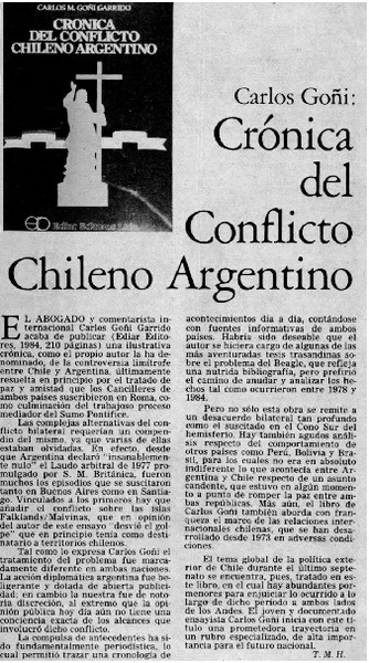 Autores chilenos - Goñi Garrido, Carlos M. - Crónica del conflicto chileno argentino
