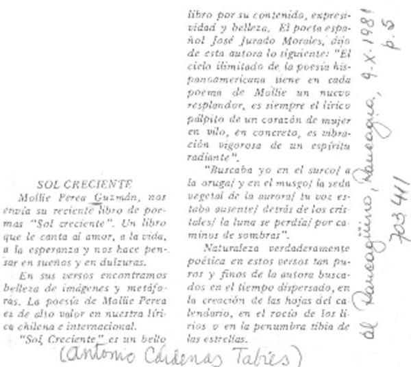 Sol creciente [artículo] Antonio Cárdenas Tabies.