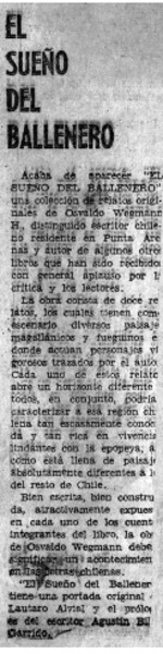 Autores chilenos - Wegmann H., Osvaldo - Sueño del ballenero