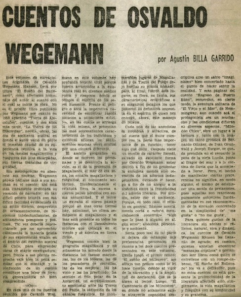 Cuentos de Osvaldo Wegmann [artículo] Agustín Billa Garrido.