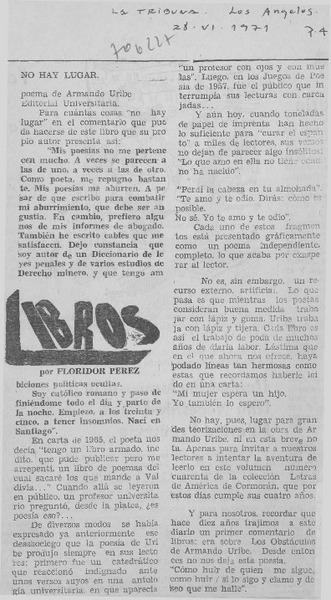 No hay lugar [artículo] Floridor Pérez.