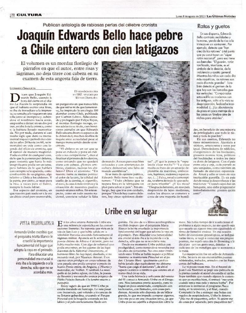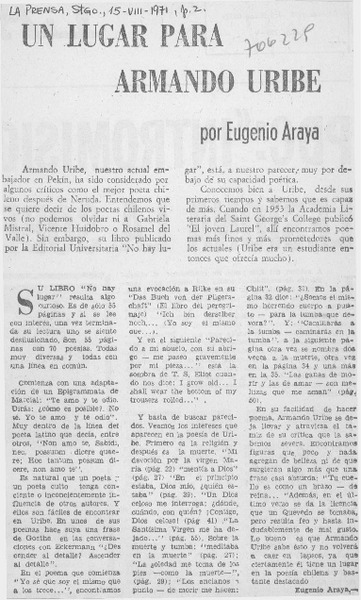 Un lugar para Armando Uribe [artículo] Eugenio Araya.