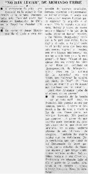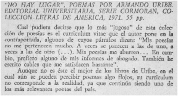 Autores chilenos - Uribe, Armando - No hay lugar