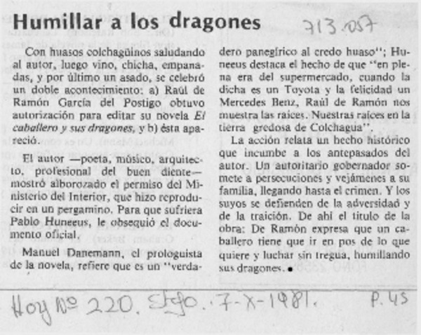 El caballero y sus dragones [artículo] Jaime Vásquez A.