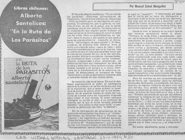 Alberto Santelices: "en la ruta de los parásitos" [artículo] Manuel Salvat Monguillot.