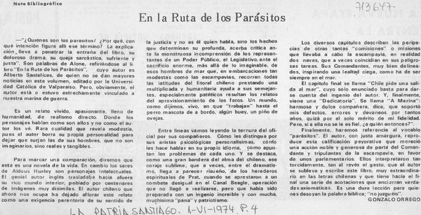 Autores chilenos - Santelices, Alberto - En la ruta de los parásitos