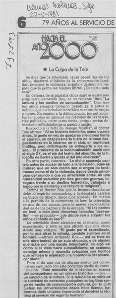 Doctor Roa lanza artillería pesada contra la televisión. [artículo]