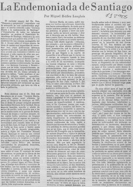 La endemoniada de Santiago [artículo] Miguel Ibáñez Langlois.