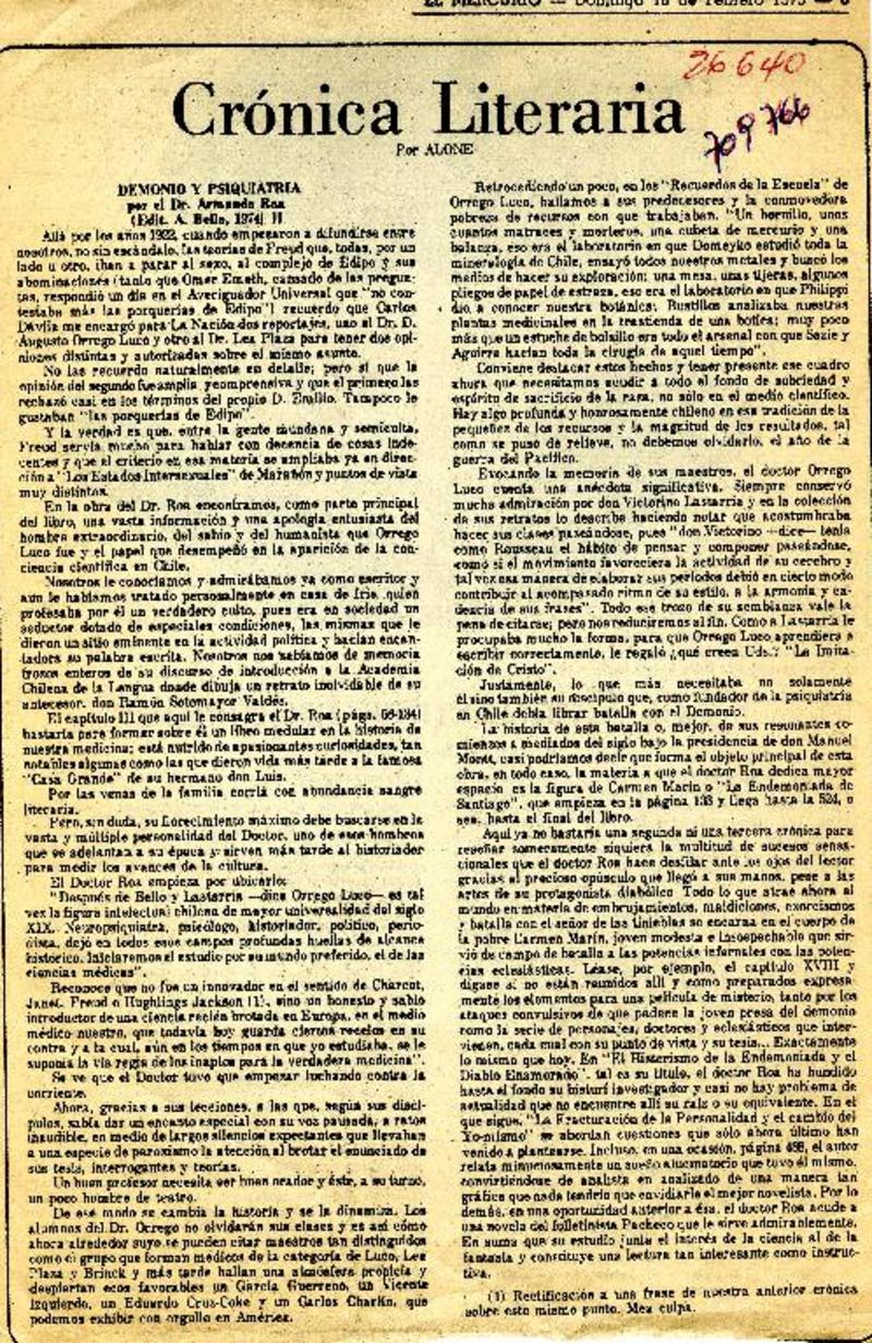 Autores chilenos - Roa, Armando - Demonio y psiquiatría - El Mercurio (Santiago, Chile)--