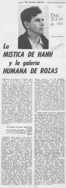 La mística de Hanh y la galería humana de rozas [artículo] Andrés Sabella.