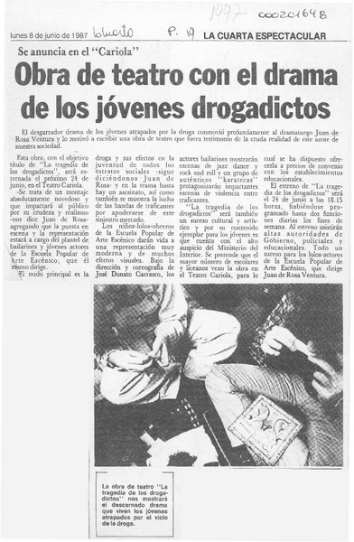 Obra de teatro con el drama de los jóvenes drogadictos [artículo].