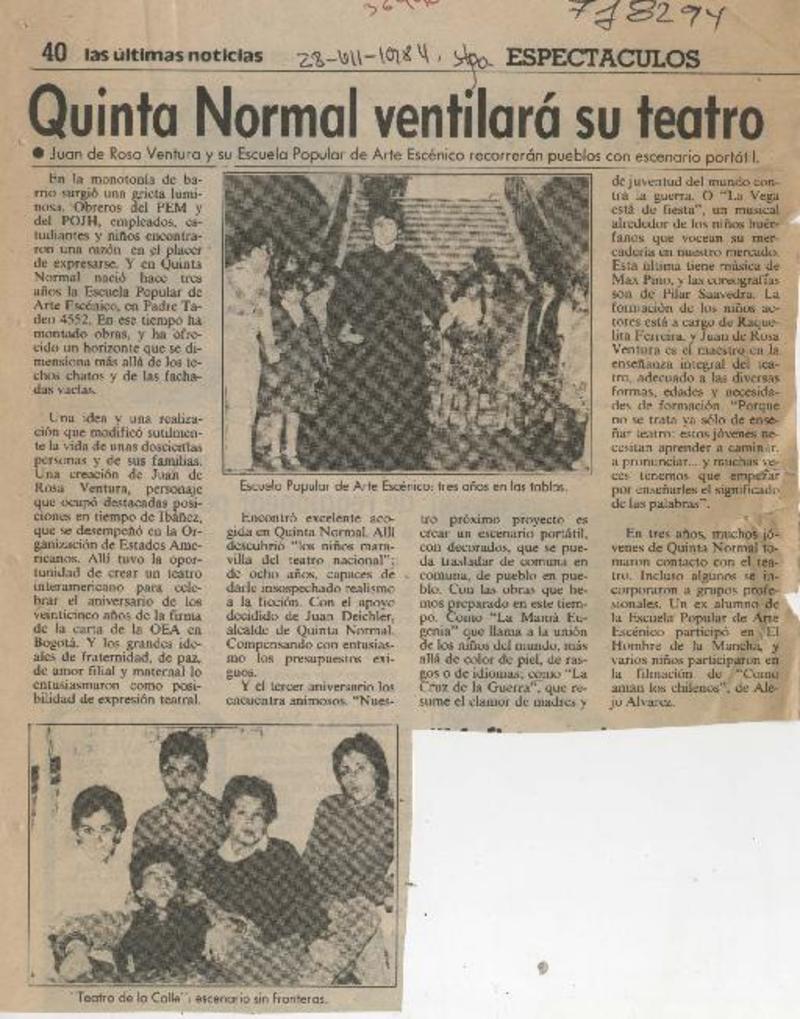 Quinta Normal ventilará su teatro. [artículo]