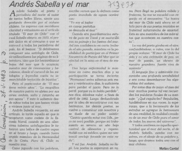 Andrés Sabella y el mar [artículo] Matías Cardal.