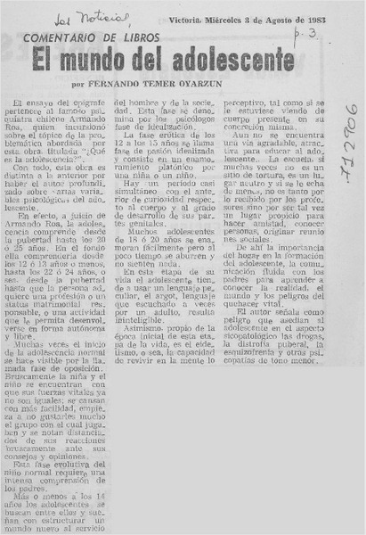 El mundo del adolescente [artículo] Fernando Temer Oyarzún.