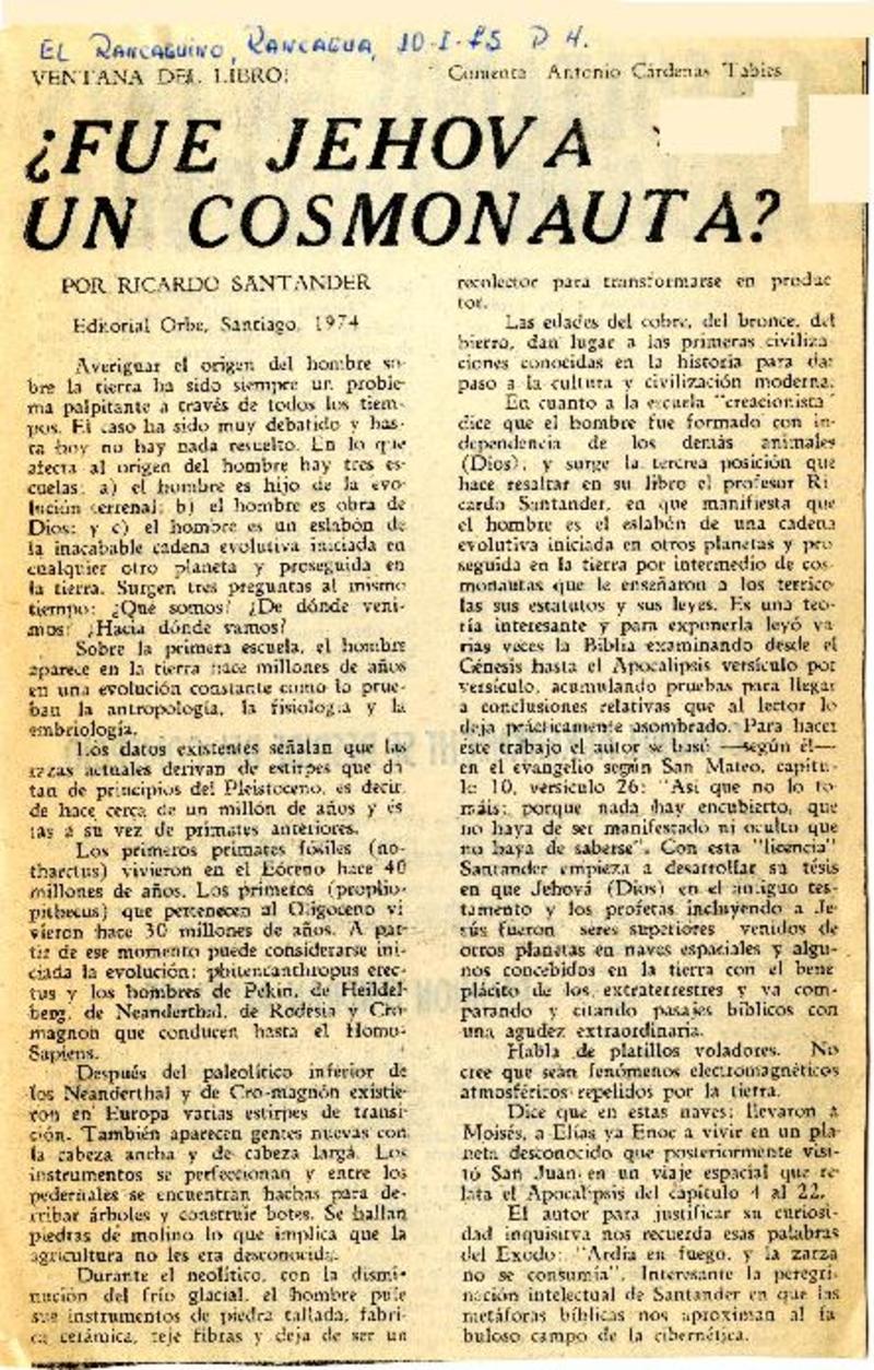 Fué Jehová un cosmonauta : [comentario] [artículo] Antonio Cárdenas Tabies.