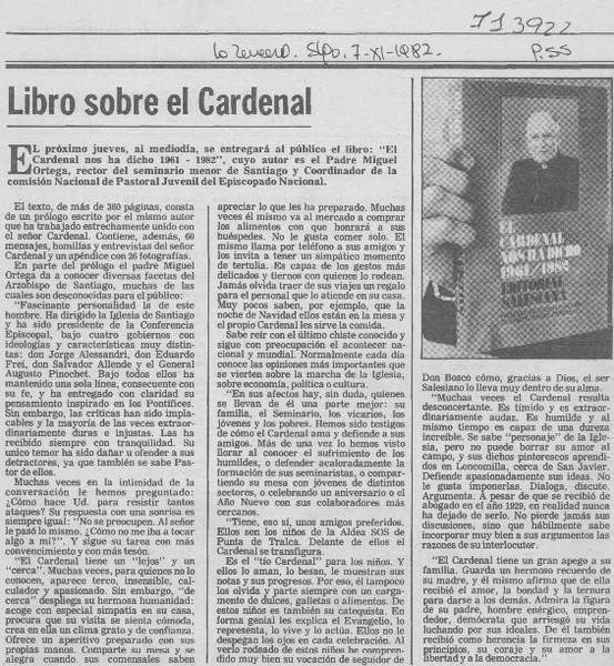 El Diario Austral (Temuco, Chile)-- - Cardenal nos ha dicho, 1961-1982 - Autores chilenos - Silva Henríquez, Raúl
