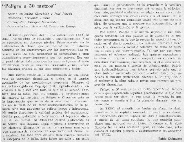 Peligro a 50 metros" [artículo] Pablo Delmonte.