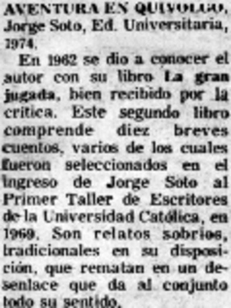 Aventura en quivolgo, de Jorge Soto [artículo] Andrés Sabella.