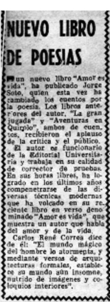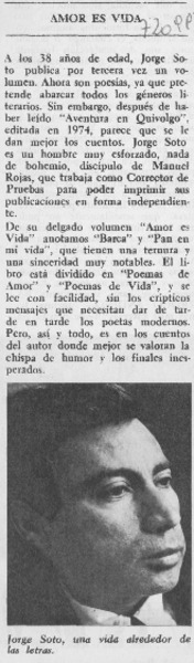 Autores chilenos - Soto, Jorge - Amor es vida