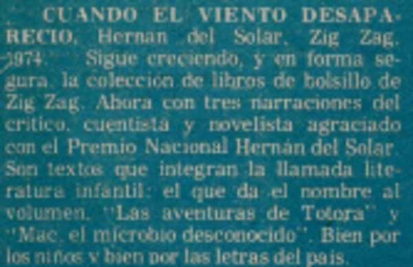 Solar, Hernán del - Autores chilenos - Cuando el viento despareció