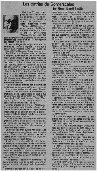 Las patrias de Somerscales [artículo] Por, Manuel Bianchi Gundián.