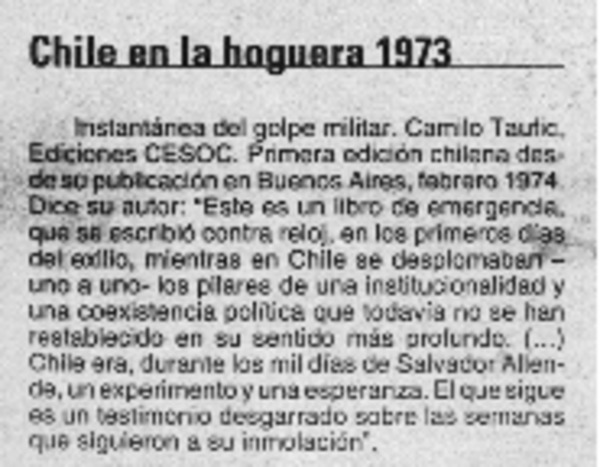 Autores chilenos - Taufic, Camilo - Chile en la hoguera 1973