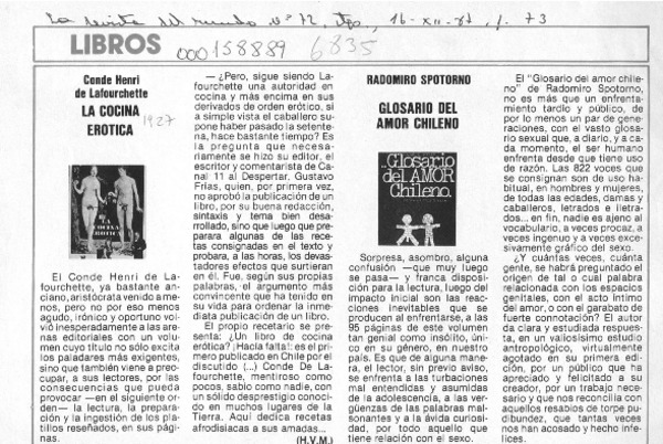 LAFOURCADE, ENRIQUE - COCINA EROTICA, LA - Spotorno, Radomiro - Glosario del amor chileno