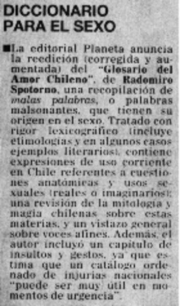Autores chilenos - Entrevistas - entrevistas - Spotorno, Radomiro - Glosario del amor chileno