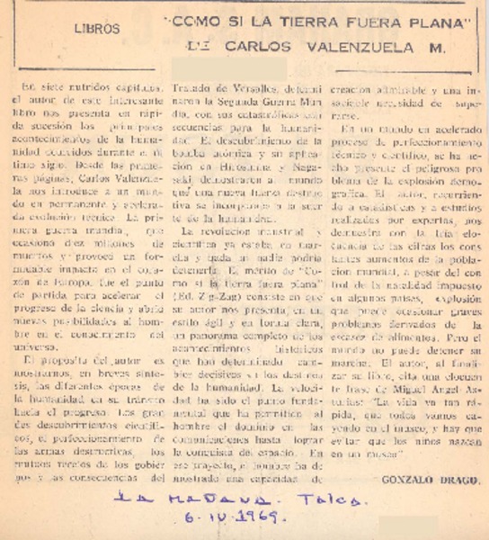 Como si la tierra fuera plana" de Carlos Valenzuela M. [artículo] Gonzalo Drago.