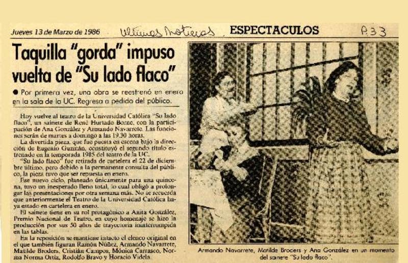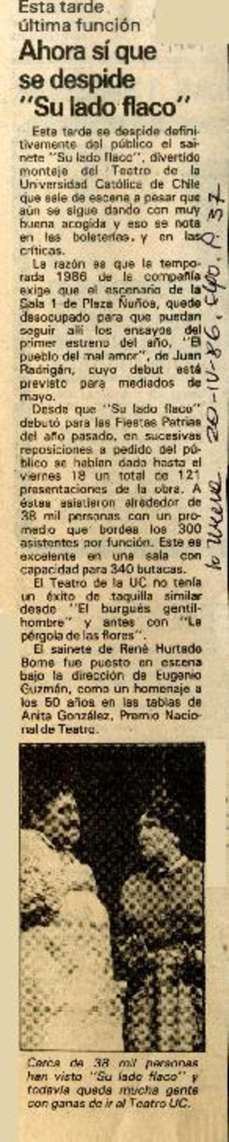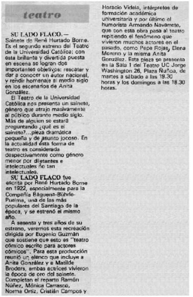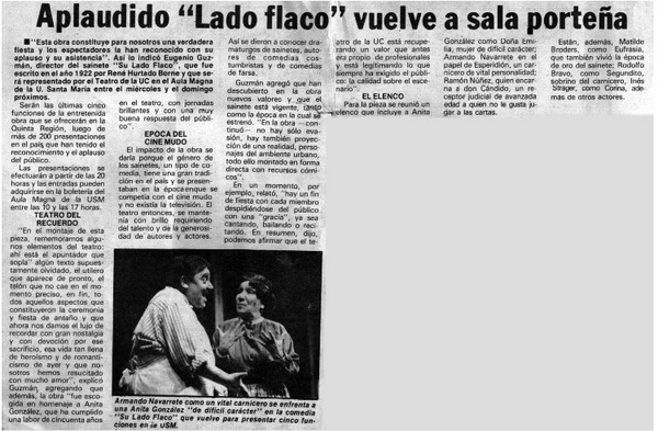 "Su lado flaco" renueva sonrisas y aplausos -- [artículo] A. M. B.