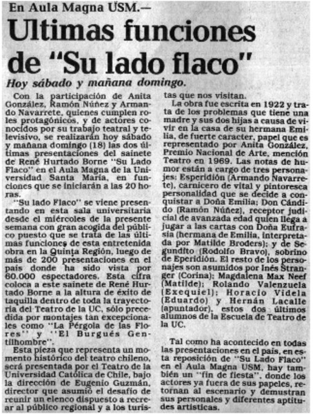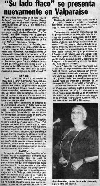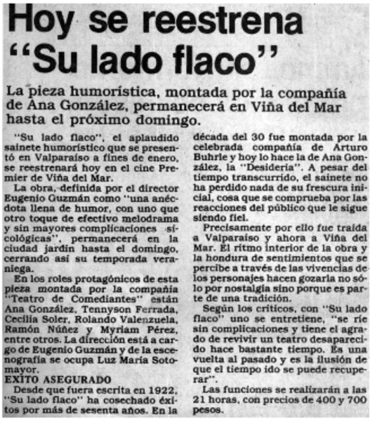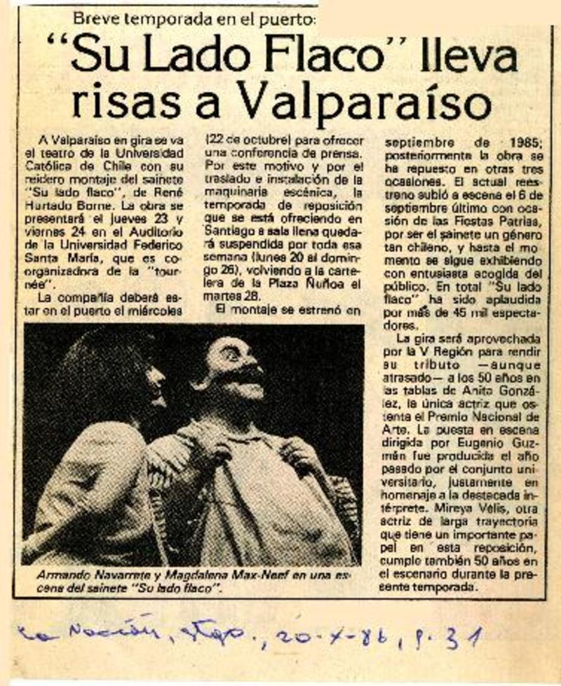 "Su lado flaco" se presenta nuevamente en Valparaíso [artículo].
