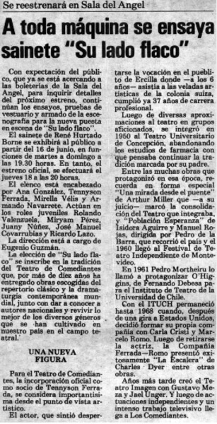 A toda máquina se ensaya sainete "Su lado flaco" [artículo].