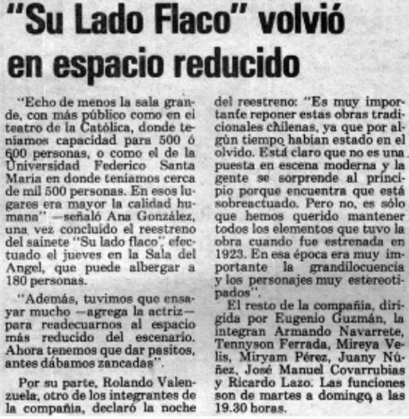 "Su lado flaco" volvió en espacio reducido [artículo].