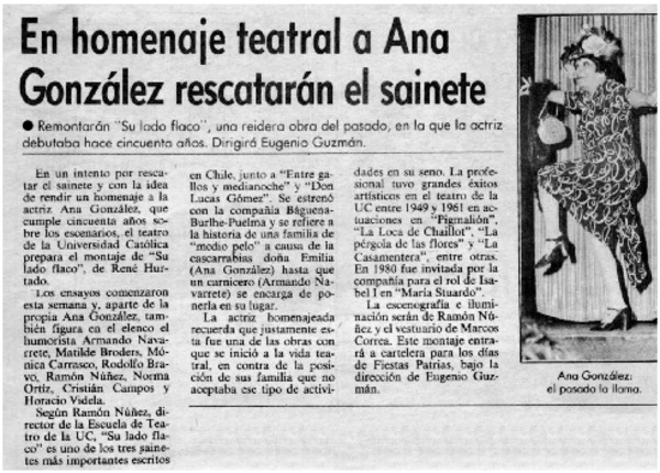 En homenaje teatral a Ana González rescatarán el sainete. [artículo]