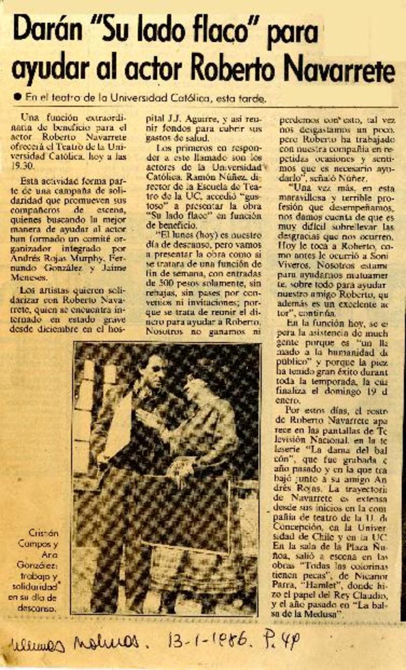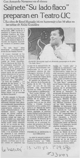 Sainete "Su lado flaco" preparan en Teatro UC. [artículo]