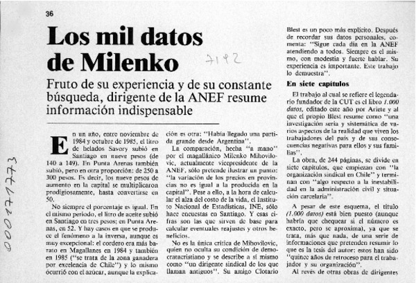 Los mil datos de Milenko [artículo] A. S.