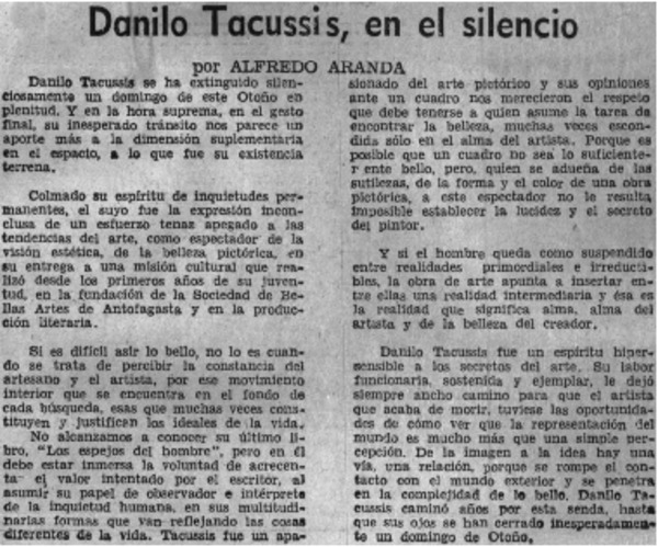 Danilo Tacussis, en el silencio [artículo] Alfredo Aranda.