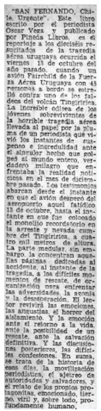 El drama del avión uruguayo en un libro [artículo] R. A.