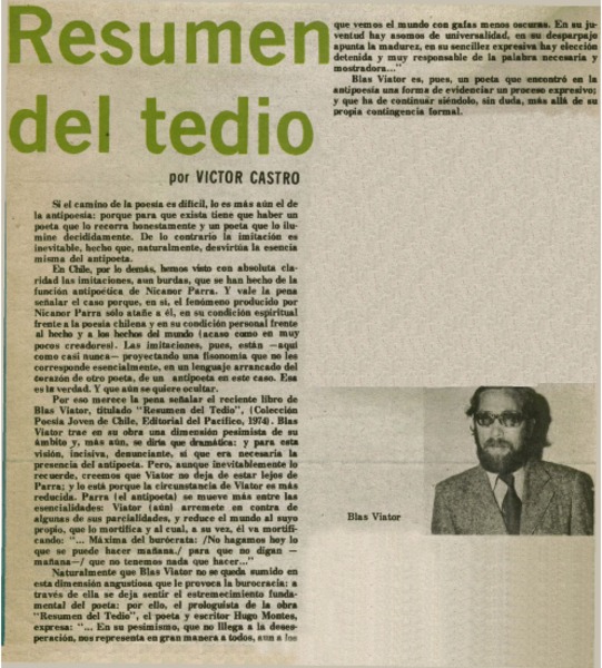 Resumen del Tedio - Viator, Blas - Autores chilenos